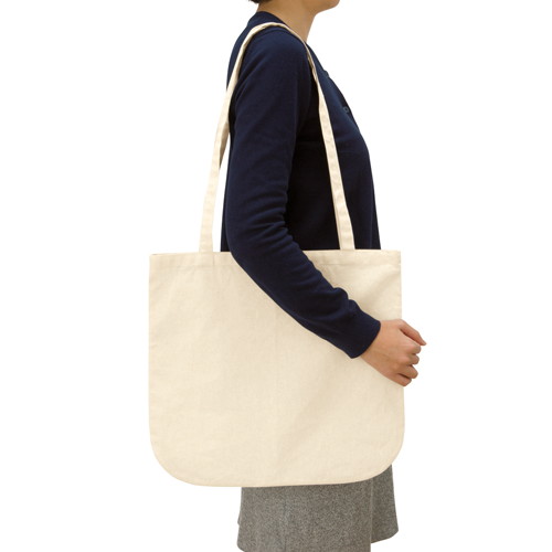 シーチング生地と比較して中身が透けにくく、厚手な低価格コットンバッグ。