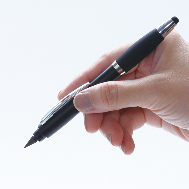 ペン先が「特殊石墨」という特殊な素材でできており、紙との摩擦で鉛筆のように文字がかける新感覚の鉛筆です。